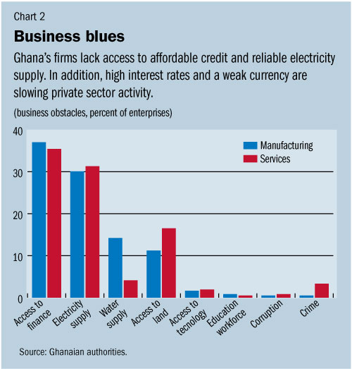 It recommended tight liquidity management, including less direct financing of the fiscal deficit. The Bank of Ghana should also allow the exchange rate to continue to adjust to prevent further erosion of an already low reserve buffer and to rebuild reserves as external pressures subside.