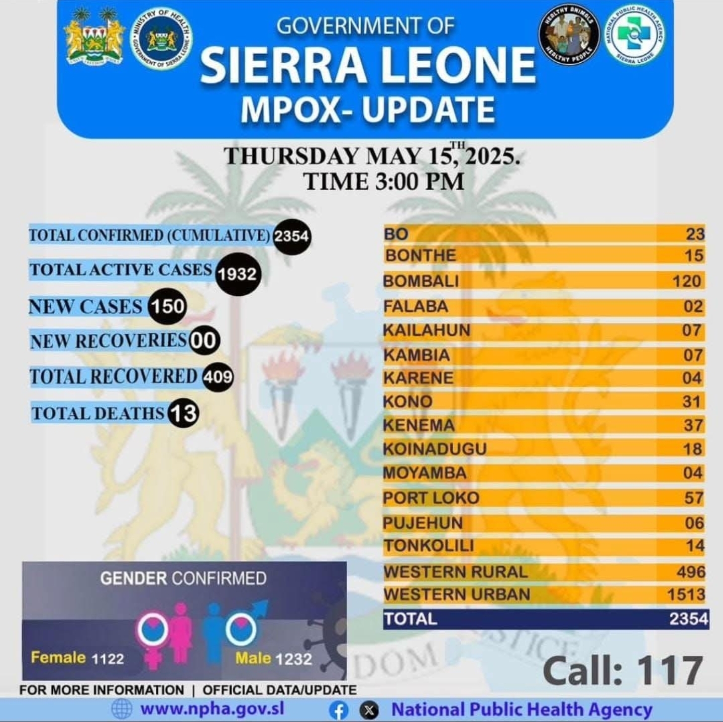 Mpox cases in Sierra Leone – 20 May 2025