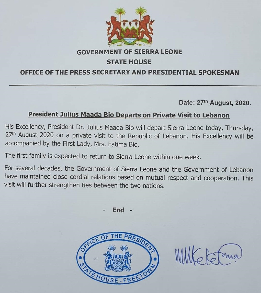 President Bio on visit to Lebanon – 28 August 2020