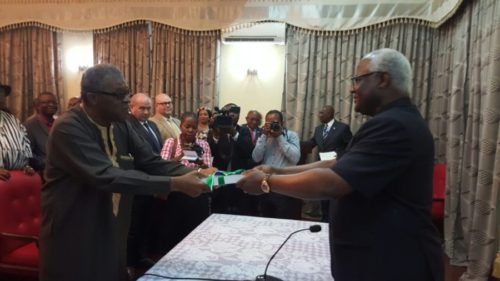 Edmund Cowan delivers CRC Report to president Koroma – 24 Jan 2017