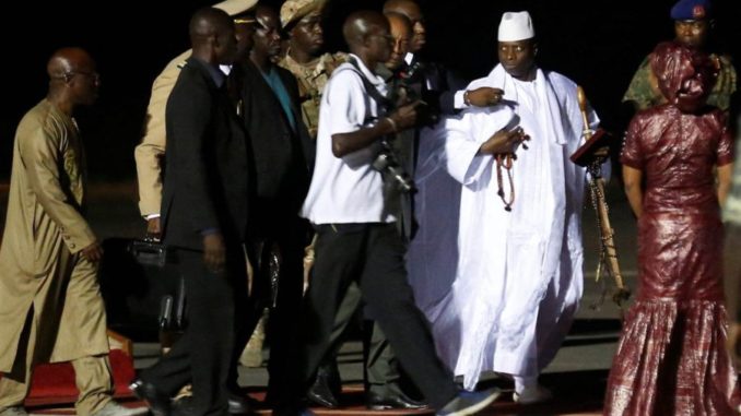 According to Aljazeera and other news media, Jammeh boarded a small, unmarked plane at an airport in the capital, Banjul,  late on Saturday,  alongside Guinea’s President Alpha Conde after two days of negotiations over a departure deal.